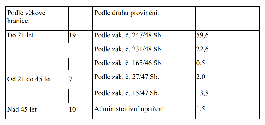 2️⃣ osoby odsouzené pro taxativně vymezené trestné činy.401 Po vykonání soudem uloženého trestu byly zařazeny za účelem převýchovy do TNP. Přikazovací komise rozhodly, jak dlouhou dobu musí osoba v táboře strávit.