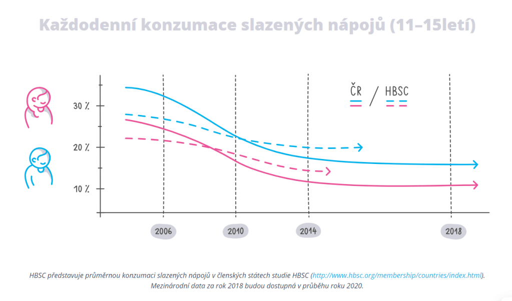 Od roku 2006 se zmenšuje počet každodenních konzumentů slazených nápojů. Zatímco ještě v roce 2006 pila denně limonády téměř třetina českých školáků ve věku od 11 do 15 let, o dekádu později se jejich počet ztenčil na 14 % – tedy zhruba na polovinu.