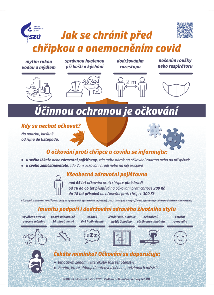 Respiračních infekcí přibývá, je dobré si připomenout základní hygienická pravidla a ochranu očkováním před těžkým průběhem nemocí jako covid-19 a chřipka. Buďme k sobě ohleduplní, nosme respirátory kdekoli vnímáme, že je to třeba pro ochranu nás i našeho okolí před přenosem infekce, nezapomínejme na hygienu rukou, pokud možno si držme rozestupy od infikovaných, kteří třeba i bezohledně kýchají a kašlají jen tak do vzduchu, nebo do dlaní, kterými se pak chytí například tyče v autobosu. Originál plakátu ke stažení zde →