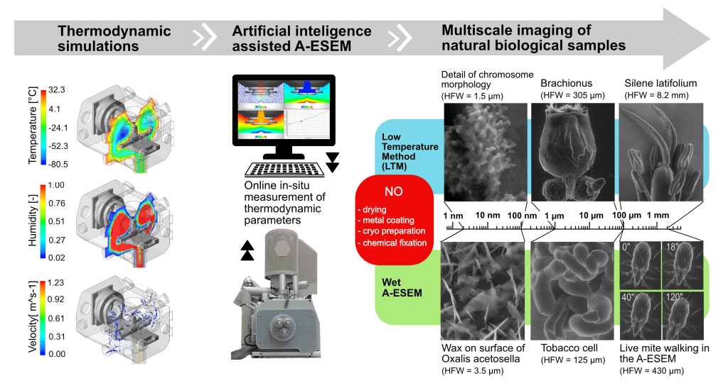 „Využíváme softwary s umělou inteligencí, které poradí, jak nastavit parametry jako je například vlhkost či proudění, aby se vzorek nezničil. Využili jsme mnoha vlastních inovací a díky ultracitlivým detektorům pozorujeme vzorky ve vysokém tlaku plynu a ve vlhkosti až 100 %, tedy v enviromentálně kompatibilních podmínkách – velice šetrně, neubližujeme jim,“ popisuje Vilém Neděla.