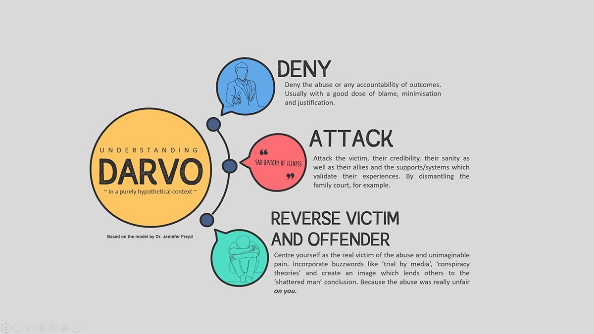 DARVO je manipulační strategie, která obrací pozornost od skutečného pachatele a nutí oběť pochybovat o sobě i o své zkušenosti. Typicky ji používají agresoři, zneužívající, nebo i instituce, když jsou konfrontováni s vlastním nevhodným, škodlivým nebo neetickým chováním. DARVO (zkratka pro „Deny, Attack, Reverse Victim and Offender“ – popírat, útočit, obrátit role oběti a pachatele) … Pokračovat ve čtení Manipulační strategie DARVODalší