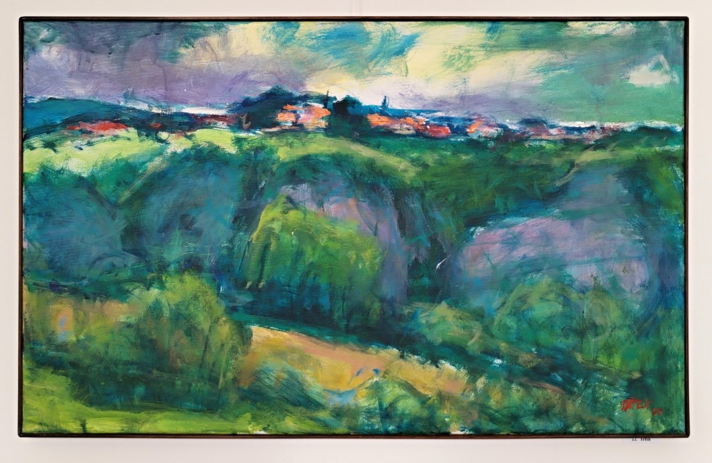 Výstava „Krajina z výšky i tahem štětce“ pak představuje jedinečný dialog dvou uměleckých pohledů na krajinu České republiky: pohled z výšky a pohled, který ji zkoumá v její hmatatelné blízkosti.