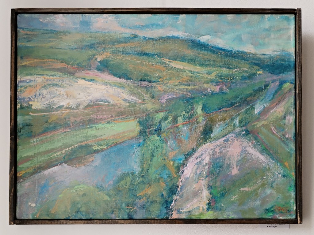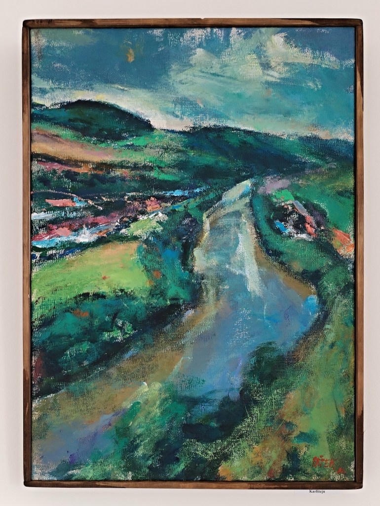 Výtvarník Zdeněk Pátek přináší komplementární, stejně citlivý pohled – tentokrát z pevné země. Na malířské plátno zachycuje krásy Českého krasu, jeho dramatické vápencové stěny, skrytá zákoutí, kaňony, prosluněné louky i tiché lesní partie. Jeho malby odhalují detaily, které ze vzduchu unikají, i jedinečnou atmosféru míst, která čekají na zkoumavý pohled poutníka. Malíř svou poetickou optikou citlivě doplňuje nebeské perspektivy fotografa. Společně tak divákovi předkládají dva rozdílné, a přesto vzájemně propojené způsoby vnímání krajiny.